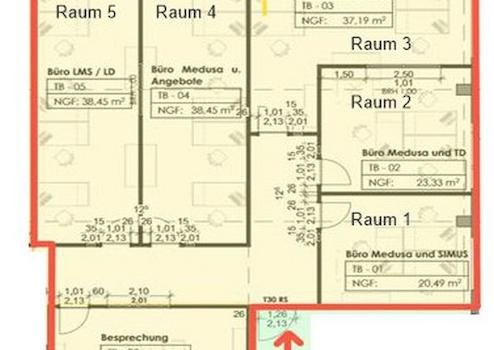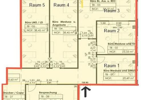Die Räume befinden sich in einem Geschäftshaus und sind Teilfläche einer größeren Büroeinheit. Ein Glasfaseranschluss liegt im Haus. Die zur Vermietung stehende Fläche kann komplett oder teilweise angemietet werden. Gemeinschaftsräume wie Besprechungszimmer, Küche und WCs können mitgenutzt werden.