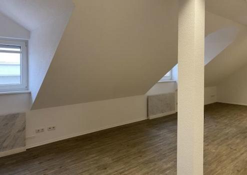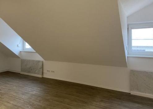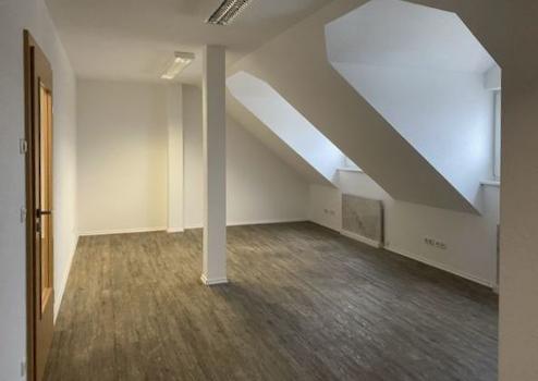 Im Dachgeschoss ist derzeit ein Büroraum vom Treppenhaus begehbar. Es sind mehrere Gauben vorhanden. Die EDV-Verkabelung verläuft in der Wand. Die WCs sind hell gefliest.