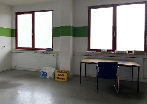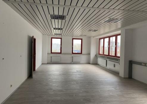 Das Bürogebäude ist im Erdgeschoss über einen repräsentativen Vorraum mit Empfang mit Natursteinboden begehbar. Hier befinden sich drei Großraumbüros mit Vinylboden, ein Aufenthaltsraum mit Laminat und Küchenzeile sowie eine hell geflieste WC-Anlage. Der Flur ist ebenfalls mit Naturstein ausgelegt. Der Innenhof ist über eines der Großraumbüros erreichbar. Die EDV- und Telefonverkabelung verläuft in Kabelkanälen und Bodentanks. Leuchten sind vorhanden. Es besteht Zugang zur Halle 1 und Halle 2.