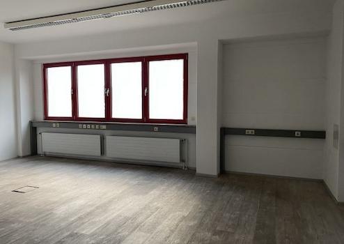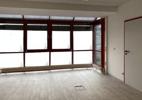 Das Bürogebäude ist im Erdgeschoss über einen repräsentativen Vorraum mit Empfang mit Natursteinboden begehbar. Hier befinden sich drei Großraumbüros mit Vinylboden, ein Aufenthaltsraum mit Laminat und Küchenzeile sowie eine hell geflieste WC-Anlage. Der Flur ist ebenfalls mit Naturstein ausgelegt. Der Innenhof ist über eines der Großraumbüros erreichbar. Die EDV- und Telefonverkabelung verläuft in Kabelkanälen und Bodentanks. Leuchten sind vorhanden.