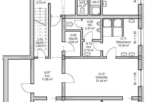 Der Büroanbau erstreckt sich über drei Stockwerke. Im Erdgeschoss und Obergeschoss befinden sich jeweils Büroräume, WCs sowie eine Teeküche. Im Keller sind die Umkleide- und Waschräume.
