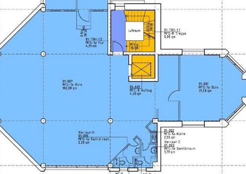 Auf dem eingezäunten Grundstück befindet sich eine Freifläche von ca. 5000 m², auf der der Hallenneubau geplant ist. Es sind Andockstationen geplant. Die Dachfläche soll begrünt und eine Dachterrasse erstellt werden.