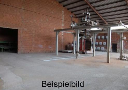 Halle 2: Freitragende Stahlhalle mit Ziegelmauerwerk ausgefacht und Satteldach, Grundfläche ca. 47 x 25 m, zwei Rolltoren ca. 6 x 5 m und ca. 5 x 5 m, Betonboden, Tagesbeleuchtung über seitliche Lichtbänder, Heizung nachrüstbar, Traufhöhe ca. 12 m und Firsthöhe