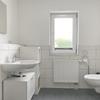 Im mit überwiegend Teppichboden ausgelegten Erdgeschoss befindet sich der großzügige Empfangsbereich. Es besteht Zugang zu zwei großen Büroräumen, von denen aus das geflieste Besprechungszimmer erreichbar ist. Dieses ist mit einem Smart-Glaselement zum Empfang hin abgetrennt, indirekter Beleuchtung, Bodentank und einem Anschluss für Beamer ausgestattet. Der Serverraum ist klimatisiert. Vom Pausenraum sind die modern gefliesten WCs abgetrennt und es besteht Zugang zur mit Glas überdachten Terrasse mit eingebautem Sonnenschutz.