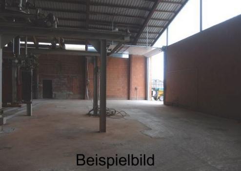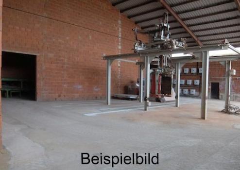 Halle 2: Freitragende Stahlhalle mit Ziegelmauerwerk ausgefacht und Satteldach, Grundfläche ca. 47 x 25 m, zwei Rolltoren ca. 6 x 5 m und ca. 5 x 5 m, Betonboden, Tagesbeleuchtung über seitliche Lichtbänder, Heizung nachrüstbar, Traufhöhe ca. 12 m und Firsthöhe