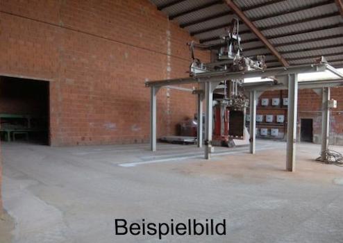 Halle 2: Freitragende Stahlhalle mit Ziegelmauerwerk ausgefacht und Satteldach, Grundfläche ca. 47 x 25 m, zwei Rolltoren ca. 6 x 5 m und ca. 5 x 5 m, Betonboden, Tagesbeleuchtung über seitliche Lichtbänder, Heizung nachrüstbar, Traufhöhe ca. 12 m und Firsthöhe