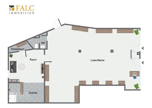 Die Gewerbefläche bietet Ihnen im Erdgeschoss eine Gesamtnutzfläche von ca. 154m².