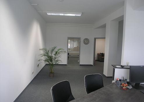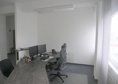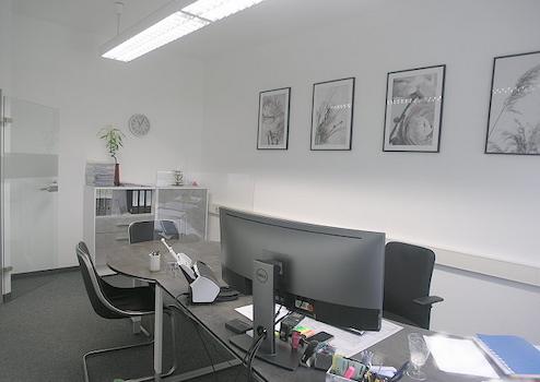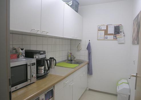 In diesem repräsentativen Gebäude Baujahr 1988 befinden sich im 1. OG mit Lift, diese Moderne und helle Büroräume mit ca. 118 m². Die Räumlichkeiten zur alleinigen Nutzung (insg. ca. 83 m²) sind aufgeteilt in 2 großzügige Büroräume, ein großes Wartezimmer das als weiteres Büro genutzt werden könnte und ein Abstellraum. Die Gemeinschaftsräume umfassen ca. 35 m² und sind aufgeteilt in einen weiteren Kunden-Wartebereich, Küche mit EBK, Stehtischbereich, 2 separate WC (1 davon zusätzlich mit Herrentoilette) mit jeweils einem Waschbecken.