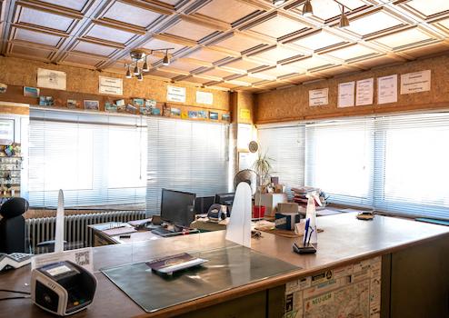 Im Hauptgebäude befindet sich die Werkstatt, das Gebäude ist teils- (2-geschoßig) und halb unterkellert. Ein Büro befindet sich im Erdgeschoss. Im Obergeschoss befindet sich eine Betriebswohnung mit Dachterrasse. Über einen separaten Eingang oder auch über eine Durchgangstüre der Halle 1 erreichen Sie die Betriebswohnung. Die Wohnung hat ca. 66,03 m² Wohnfläche und verfügt über 3 großzügige Zimmer, ein Tageslichtbadezimmer sowie einer Essküche. Die Fenster in Büro und Wohnung verfügen über eine Alu Profilit-Doppel-Verglasung mit einem Lüftungsflügel je Fenster.