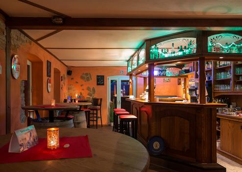 Plätze: Innen 28 + Tresen, außen 20