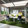 Rasterdecke mit integrierter Beleuchtung: Sorgt für ein angenehmes Raumgefühl.