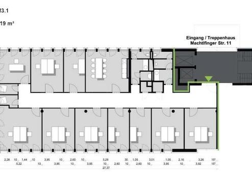 Ein modernes Büroensemble mit Campuscharakter, das keine Wünsche offenlässt. Großzügige, teils zweigeschossige Foyers begrüßen Mitarbeiter und Gäste. Raumhohe Fensterelemente schaffen eine helle, angenehme Atmosphäre. Die durchdachte Architektur ermöglicht sowohl loftartige Großraumbüros als auch individuelle Einzel- oder Teambüros. Ein herrlich begrünter Innenhof lädt zur kreativen Pause ein. TG-Einzelstellplätze, Außenstellplätze und Lager-/Archivflächen stehen zur Anmietung zur Verfügung.