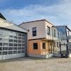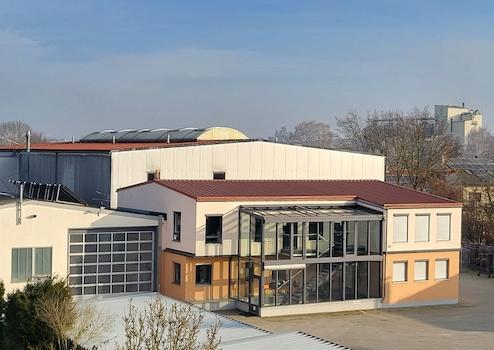 Weitere Hallen, ein Garagenkomplex sowie eine riesige Freifläche befinden sich auf dem Firmengelände. Auf einem der Hallendächer ist eine neue PV-Anlage (80 kW) montiert.