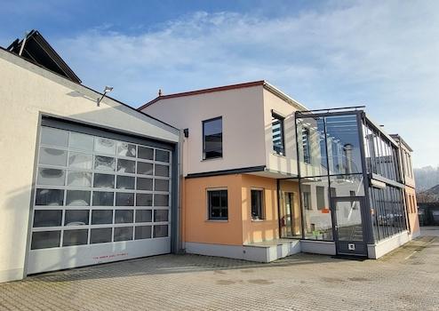 Das Firmenareal ist über zwei Zufahrten erschlossen. Der Innenhof ist gepflastert und bietet beste Rangiermöglichkeiten für LKW sowie genügend Parkmöglichkeiten.