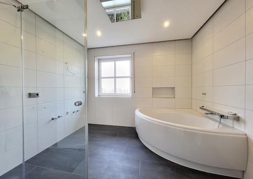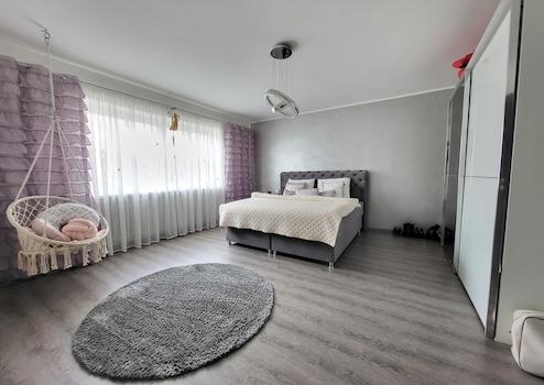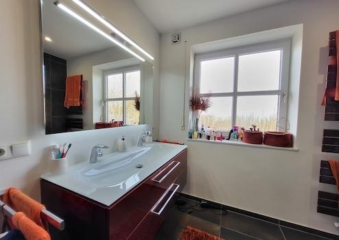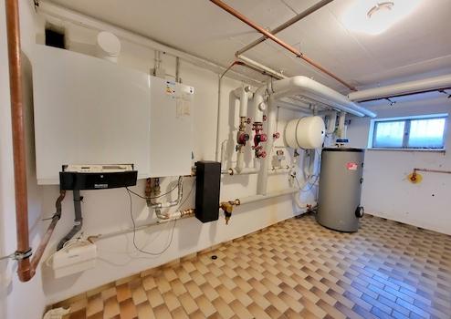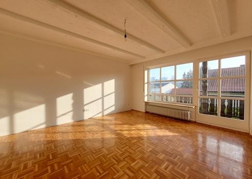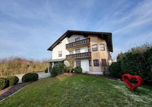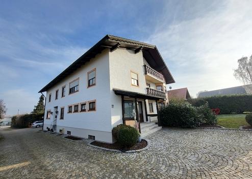 Das Zweifamilienhaus an der Westseite des Areals (separates Flurstück) hat eine eigene Einfahrt sowie einen eingewachsenen Garten und garantiert dadurch Privatsphäre. Die Bausubstanz des 1977 erbauten, voll unterkellerten Massivhauses ist tadellos, da das Haus vorbildlich in Stand gehalten wurde. Die größere Wohneinheit (ca. 300 m²) wurde bereits saniert und verfügt über hochmoderne, exklusive Ausstattung. Die zweite Einheit (ca. 88 m² Wfl., ausgebautes DG nicht eingerechnet) ist teilsaniert und hat einen eigenen Hauseingang sowie einen separaten Garten.