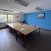 Das Erdgeschoss des Anbaus wird als Büro- und Sozialfläche genutzt. Das gesamte Erdgeschoss ist gefliest, über einen Außenzugang erreichbar und wird mit einer Ölzentralheizung beheizt. Über den Flur sind nahezu alle Räume sowie die Halle begehbar. Vom Chefbüro aus ist eine Teeküche sowie ein Abstellraum erreichbar. Im Aufenthaltsraum ist eine zusätzliche Küchenzeile vorhanden. Aufgrund der Vielzahl von Fenstern ist die Fläche sehr hell und freundlich. Deckenleuchten sorgen für ausreichend Licht. Eine EDV-Verkabelung ist vorhanden. Die WCs sind deckenhoch hell gefliest.