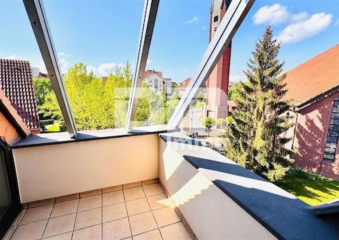Vom Büroraum 2 haben Sie Zugang zum gefliesten Balkon/Loggia mit ansprechendem Fernblick.