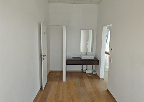 Die komplette Einheit ist durchgängig mit hellem, hochwertigem Parkettboden versehen. Ein Teil des Bodens kann vom Mieter individuell gestaltet werden. Der Toilettenraum ist ebenfalls mit Parkettboden ausgestattet.