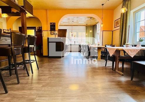 Im EG punktet das Gebäude 1 mit sanierten vollmöblierten Gasträumen (60 Plätze) nebst separater Küche, die mit einer professionellen Gastroküche (Neuwert ca. 50.000,00€) ausgestattet ist.