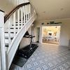 Erdgeschoss: Offener Wohn-, Ess- und Küchenbereich (mit wassergeführtem Holzkamin), Gästezimmer (respektive Büro), Diele, Bad (mit ebenerdiger Dusche, Waschtisch, WC und Pissoir)