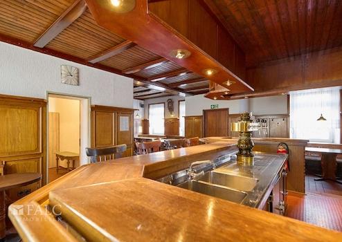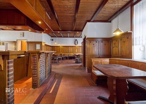 Neben einem sehr traditionellen und gemütlichen Gastraum mit aufwändiger Holzvertäfelung, zahlreichen Tischen, einer einladenden Theke mit zahlreichen Sitzplätzen und einem separaten Club- bzw. Tagungsraum ist die Gaststätte vollständig eingerichtet. Auch die professionelle Gastroküche steht zur Wiederinbetriebnahme zur Verfügung. Die Einhaltung gastronomischer Auflagen obliegen dem neuen Pächter.