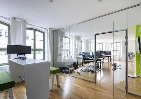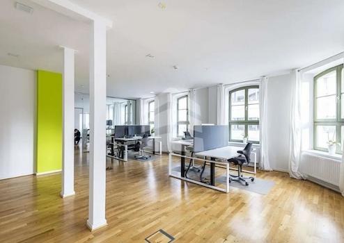 Die Büroeinheit erstreckt sich über eine Fläche von ca. 88,7 m² und befindet sich in einem gepflegten Zustand. Der hochwertige Parkettboden und die großen Fensterfronten schaffen eine angenehme Arbeitsatmosphäre. Die Fläche eignet sich ideal für kreative Arbeitsprozesse und bietet ausreichend Platz für individuelle Gestaltungsmöglichkeiten. Die moderne Ausstattung und die zentrale Lage machen dieses Objekt zu einer attraktiven Option für Unternehmen, die Wert auf ein repräsentatives Arbeitsumfeld legen.
