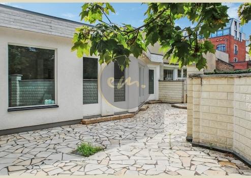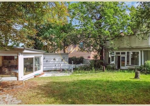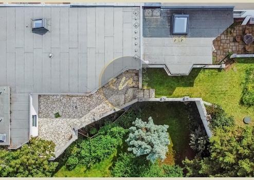 Der große Garten sowie der an den Wohn- und Gewerbebereich im Obergeschoss angeschlossene Dachterrassenbereich bieten die seltene Möglichkeit, urbanes Leben in zentralster Lage mit Wohnen in grüner und ruhiger Umgebung zu kombinieren.
