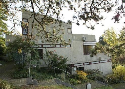 Das Gebäude ist ein klassischer Sichtbetonkörper, der auch innen klar strukturiert ist. Architektonisch eine "schnörkellose" Arbeit, die durch ihre Klarheit besticht.