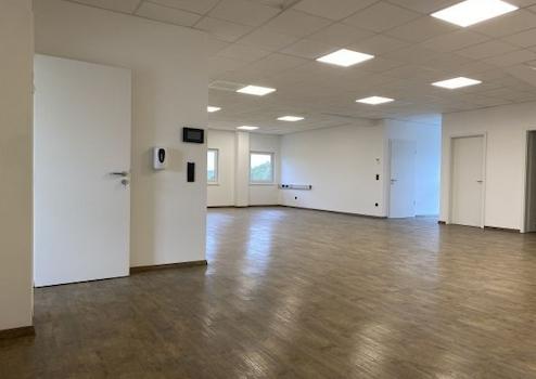 Der Bürotrakt ist in Trockenbau ausgebaut und deshalb ohne großen Aufwand umzugestalten. Er ist komplett mit strapazierfähigem Vinylboden, EDV-Verkabelung und abgehängten Decken mit integrierten LED-Leuchten ausgestattet. Beheizt wird mit einer Gaszentralheizung.