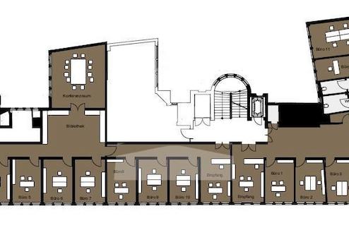 Das BUERO.Center befindet sich im Erdgeschoss der Stadtvilla. Insgesamt verfügt die Einheit über 14 Räume im Erdgeschoss und einer Gemeinschaftsküche und weitere Nebenflächen im Gartengeschoss. Aufgrund der möglichen ...