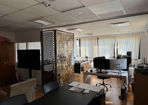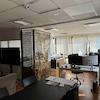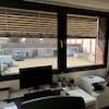 Das Büro verfügt über einen Laminatboden in Holzoptik und Akkustikdecken.