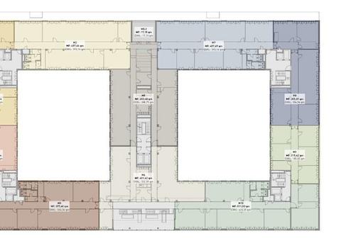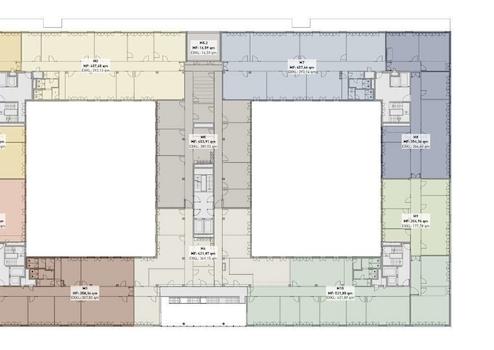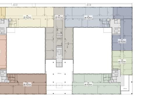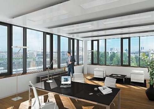 Dieses anspruchsvolle Neubau-Büroensemble besticht durch hochwertig ausgebaute Mietflächen und eine Tiefgarage. Dachterrassen, Loggien und Innenhöfe bieten eine faszinierende Aussicht und laden zu kreativen Pausen ein. Die großzügig verglasten Fassaden des 6-geschossigen Gebäudes ermöglichen einen beeindruckenden Blick über die Dächer Münchens. Die erfrischende Wahl der Farben und Materialien - weißer Lack, Naturstein, viel Glas und Licht - harmoniert optimal mit der Bauweise und den Proportionen des Gebäudes.