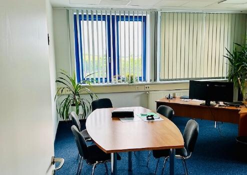 Die Büroflächen sind hochwertig ausgestattet und bieten eine angenehme Arbeitsumgebung. Für Mitarbeiter stehen getrennte Sanitärbereiche sowie separate Duschen mit Umkleiden zur Verfügung. Eine integrierte Pantryküche rundet die Aufenthaltsqualität ab.