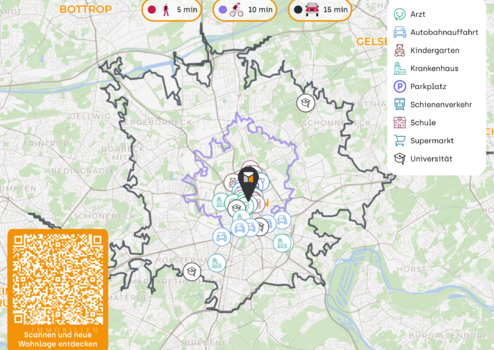 Die Anbindung an das Autobahnnetz ist hervorragend, so dass umliegende Städte wie Duisburg, Bochum oder Düsseldorf schnell erreicht werden können. Auch der Flughafen Düsseldorf ist nur ca. 30 Autominuten entfernt.