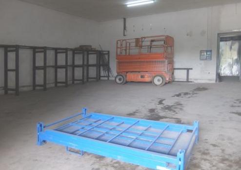 Die ca. 4,60 m hohe Halle mit Betonboden ist sowohl über eine Eingangstüre als auch über vier ca. 5 x 4 m große Tore zu erreichen. Die Belieferung erfolgt über eine überdachte Rampe mit vorhandenem großem Wendeplatz. Die Beleuchtung ist an der feuerfesten Decke angebracht.