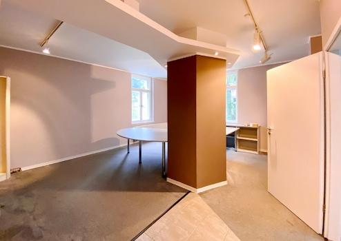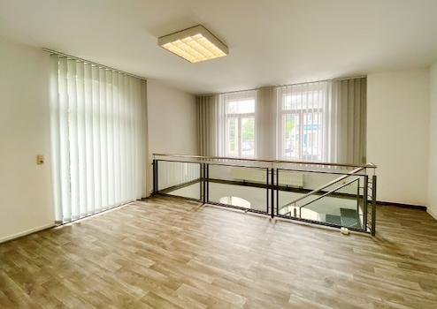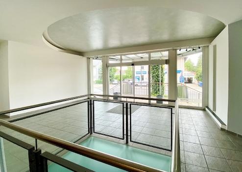 Ihre Kunden werden über eine beidseitig begehbare Treppe in den hellen Eingangsbereich geführt. Von dort gehen mehrere Räume für verschiedene Nutzungsmöglichkeiten, wie z. B. Büro- oder Lagerfläche, ab. Ein Blickfang ist die abgehängte Decke im Verkaufsraum.