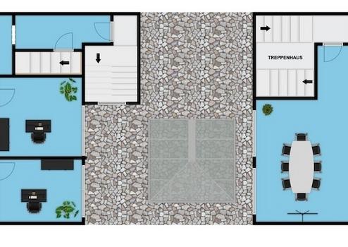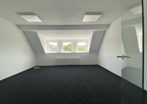 Das 2. Obergeschoss verfügt über vier abgeschlossene Büros mit Glastüren, sowie einen großzügigen, Konferenzraum, der sich ideal für Besprechungen oder Schulungen eignet. Alle Räume sind klimatisiert. Zwei der Büros sind größer geschnitten und durch leichte Dachschrägen architektonisch markant ideal für Doppel- oder Führungsbüros. Ein separates WC ist ebenfalls vorhanden.