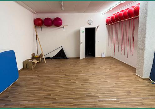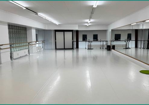 Die Räumlichkeiten der Tanzschule sind durchweg modern und hell ausgestattet. Die Tanzschule verfügt über einen eigenen Eingang. Am Anfang des Eingangs befindet sich ein Empfang. Die Böden sind im vorderen Bereich mit einem modernen hellen Laminat ausgelegt. Der hintere Bereich, hier befindet sich eine kleine Küche bzw. Bar mit Ausschank, ist mit einem hellen Teppich ausgelegt. Links gelangen die Tanzschüler und Schülerinnen in einen großen, durch zahlreiche Lampen sehr gut ausgeleuchteten Tanzsaal, ausgelegt mit einem speziellen weißen Kunststoffboden. Die rechte Wand ist übe die gesamte Länge mit Spiegel ausgestattet, die rechte Seite mit Glasbausteinen, die ausreichend viel Tageslicht hereinlassen. Nebenan befindet sich ein Fitnessraum, der...