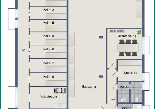 Bei diesem Kaufangebot handelt es sich um eine vermietete Gewerbeeinheit im Erd- und Untergeschoss eines gepflegten Wohn-& Geschäftshauses mit weiteren sechs Wohneinheiten. Die Gewerbeeinheit ist im Erdgeschoss als Tanzschule ausgebaut. Zusätzlich gibt es Sozialräume und Toiletten im Untergeschoss, erreichbar über einen Innentreppe, sowie ein großer, zurzeit nicht genutzter Lagerraum, der bei Bedarf zusätzlich angemietet werden könnte.