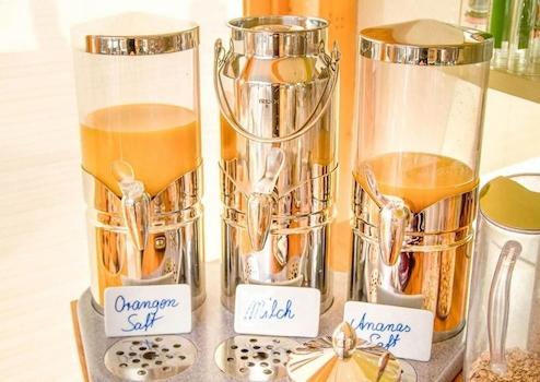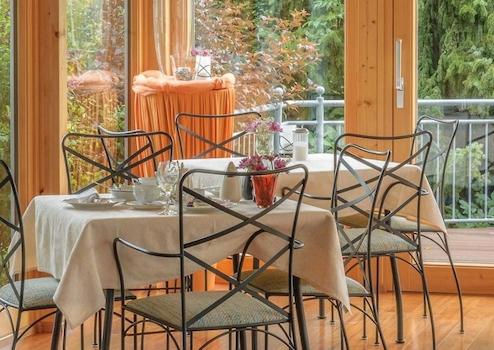 Es gibt eine modernes Restaurant der in das Frühstückszimmer mit angrenzendem Wintergarten übergeht, von hier kommt man auch auf die eingezäunte Terrasse wo man im Sommer sehr gut verweilen kann.