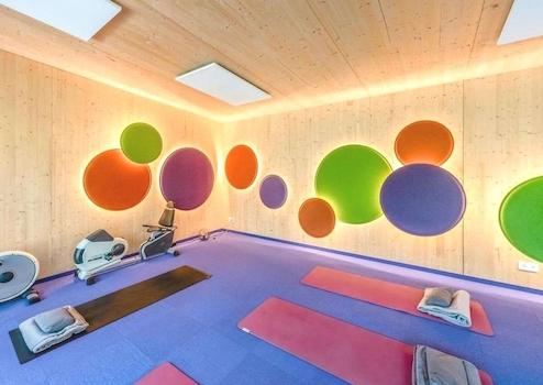 Im Außenbereich wurde ein Yogastadel im Hüttencharakter gebaut in welchem die angebotenen Kurse im Innen- oder Außenbereich stattfinden können.