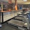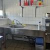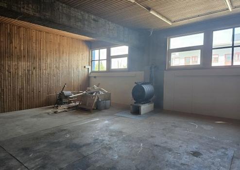 Die Werkstatt ist über ein Falttor mit ca. 3,60 m Breite und ca. 3,00 m Höhe mit Fahrzeugen befahrbar. Der Betonboden ist als monolithische Betonplatte ausgeführt und damit sehr belastbar. In der Werkstatt sind ein Büro auf einem Tableau auf einer Höhe von ca. 1 m und zwei WCs mit Waschbecken eingebaut. Sie ist aufgrund der großen Fenster sehr hell und verfügt über eine Deckengrundbeleuchtung. Die Beheizung erfolgt über einen mit Holz beheizten Umluftofen. Die Hallenhöhe beträgt ca. 3,50 m.