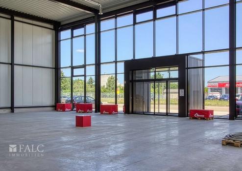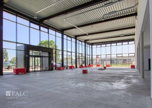 Hier trifft repräsentativer Lifestyle auf urbane Klarheit: Zur Verfügung steht hier ab sofort eine Gewerbefläche mit einer Größe von 472 m², die mit einer Deckenhöhe von nahezu 9 Metern (8,40 m - 8,85 m; Dach mit 2,5 % Gefälle) beeindruckt. Zwei vollverglaste Fassaden durchfluten den Raum mit Tageslicht, weiten ihn optisch und richten alle Blicke auf Ihre Produkte. Der versiegelte Betonboden verleiht dem Interieur seinen charakteristischen Loft‑Charme und schafft eine reduzierte, kraftvolle Bühne für exklusive Küchenmodule, hochwertige Fahrraddesigns oder filigrane Objekte. Durch die minimalistische Materialästhetik treten Strukturen und Farbnuancen besonders eindrucksvoll hervor.