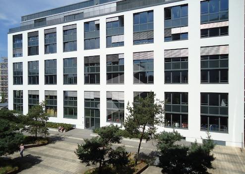 Das ursprüngliche Rheinmetall-Gebäude an der Rather Straße, welches um 1916 entstand, wurde 2003 aufgestockt, entkernt und komplett mit neuer Haustechnik