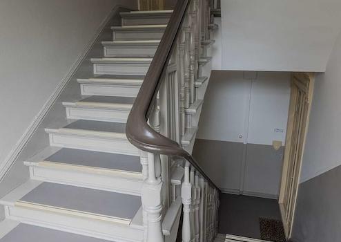 Das Gemeinschaftseigentum präsentiert sich gepflegt: Frisch gestrichene Treppenhäuser schaffen ein freundliches Erscheinungsbild und heißen Besuchende wie Mitarbeitende gleichermaßen willkommen.