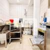 An den Hauptküchenbereich schließt die Spülküche und das Büro mit Vorratsbereich an.