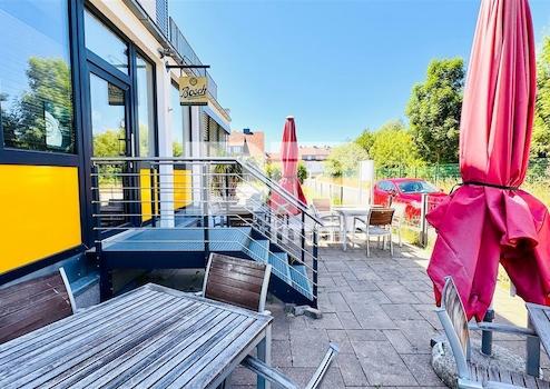 Vom Verkaufsbereich / Kiosk haben Sie direkten Zugang zur kleinen Terrasse 2.