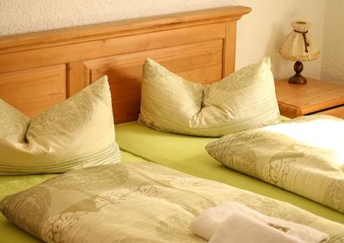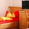 b) zweigeschossiger Neubau von 1994 (Gasbetonwände, FOAMGLAS-Kompaktdach auf Stahlbetondecke mit bekiester Dachdichtungsbahn (dringender Reparaturbedarf), innen Filigrandeckenelemente, Massivtreppe mit Plattenbelag, isolierverglaste Holzfenster, Brandschutztüren, Lüftungsanlagen, Rauchabzugsanlagen, 8 DZ im EG, 5 DZ + 2 EZ im OG, alle Zi. mit D/WC, 28 Betten, Gastrofläche 269 m², Nutzfl. 103 m²) als Anbau Bettenhaus zum Altbau