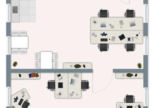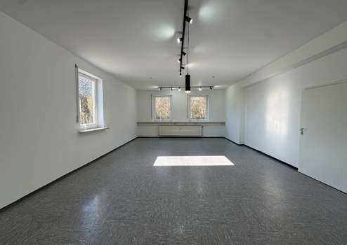 Die beiden Hauptbereiche bieten ausreichend Platz für Einzel- oder Teamarbeitsplätze, Kundenbereiche oder auch eine kombinierte Nutzung aus Arbeits- und Besprechungszonen. Große Fenster sorgen für angenehmes Tageslicht und eine freundliche Arbeitsatmosphäre. Das WC ist separat gelegen und zentral erreichbar.