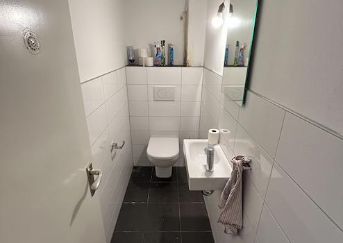 Es bestehen aktuell Wasserschäden an der Außen- sowie Rückwand des WCs.